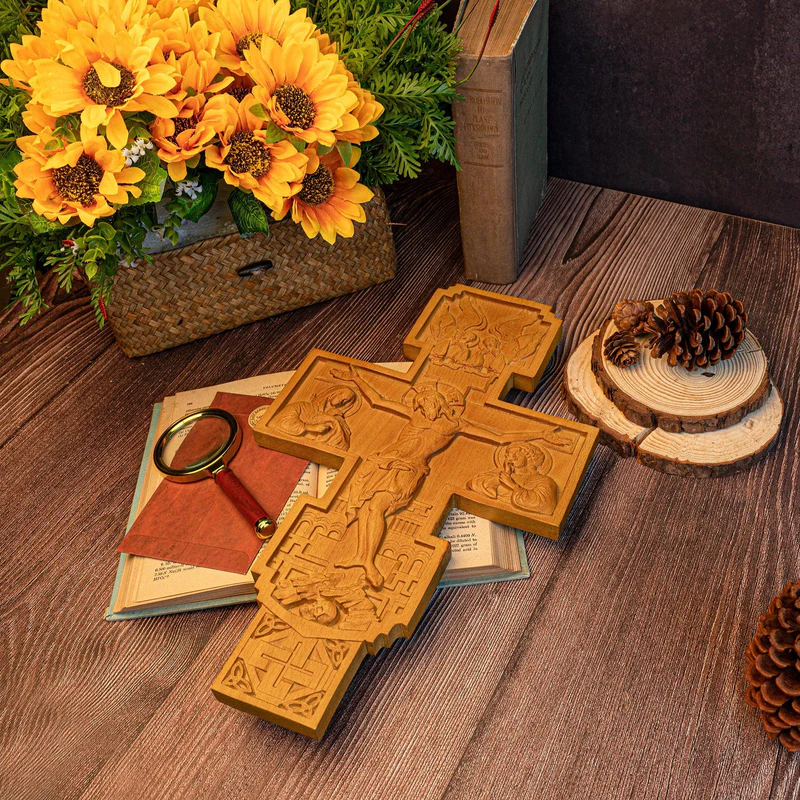 Let this carved cross bless and grace your home / office. Each Cross has unique rare grains due to the natural variance in the wood.