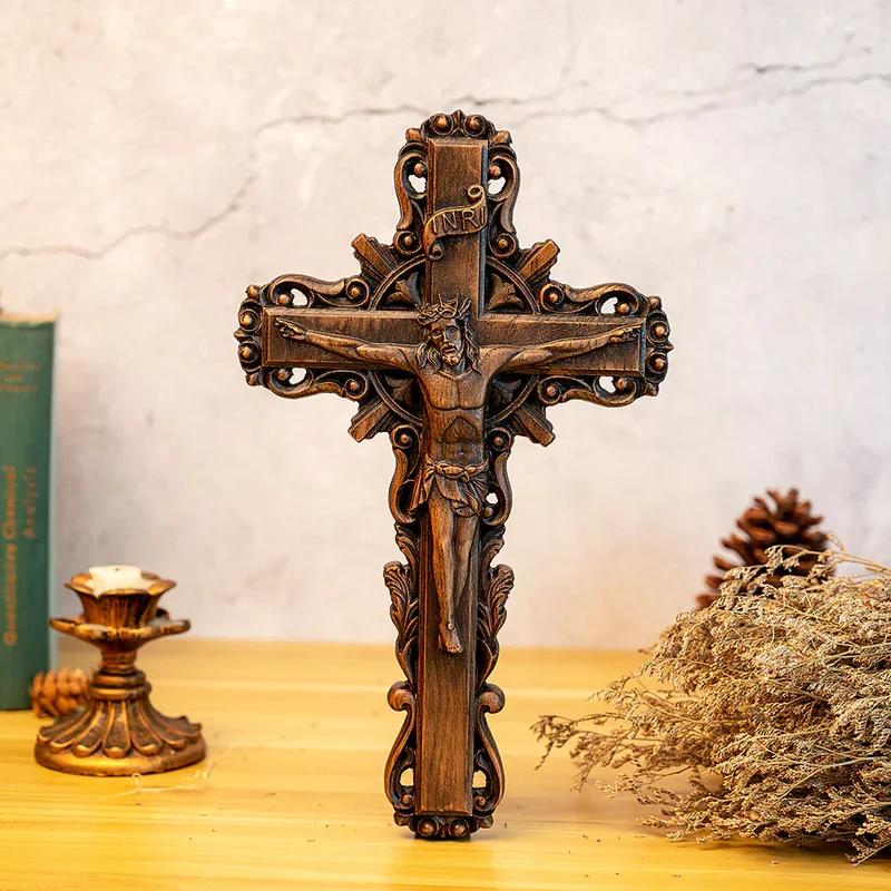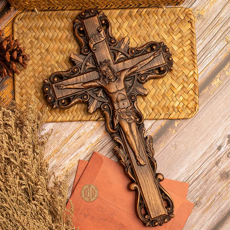 RELIGIOUS ART WOOD CARVING: This is a stunning 12,5″ Wooden Crucifix carved from solid wood. This realistic wall crucifix wood carving is breathtaking and is a rustic wooden crucifix perfect for hanging in any room in your home or church. It is an ideal Christian gift, Baptismal Gift, Christian Wedding gift or a very special upcoming Christmas gift.