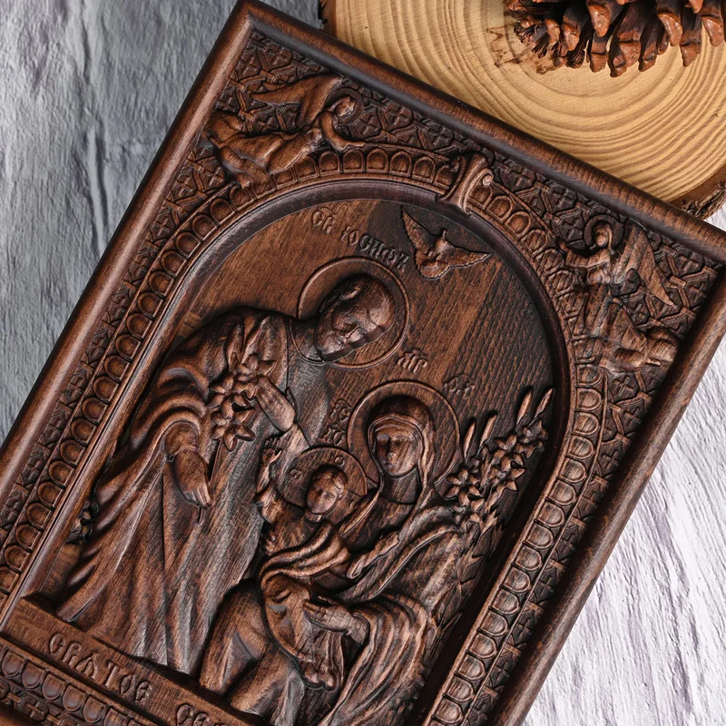 - Holy Figure Outline: Carved along the natural grain of beechwood, the folds and postures of the Holy Family seem copied from Bible illustrations. Each wood grain holds “serenity and blessing.” Hung on the wall, it becomes a silent guardian of faith.