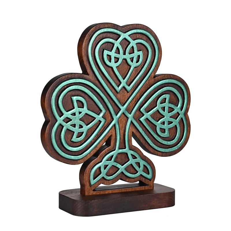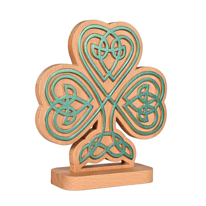 Celtic Knot Beechwood Clover Tabletop Ornament – Symbol of Christian Faith and Divine Blessings