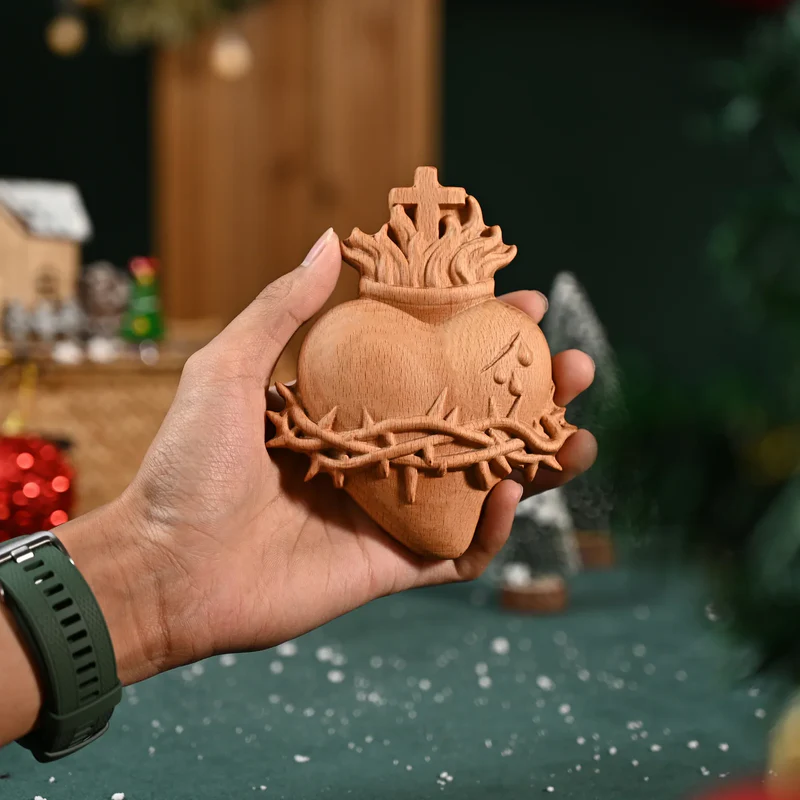 - High-quality Material: Meticulously carved from selected superior wood, the wood has clear texture and warm color, as if carrying the heaviness of the earth and the grace of God. Each grain tells a story of nature, and each hue contains the precipitation of time, making these sacred hearts elegant in simplicity and divine in nature.