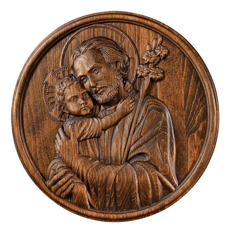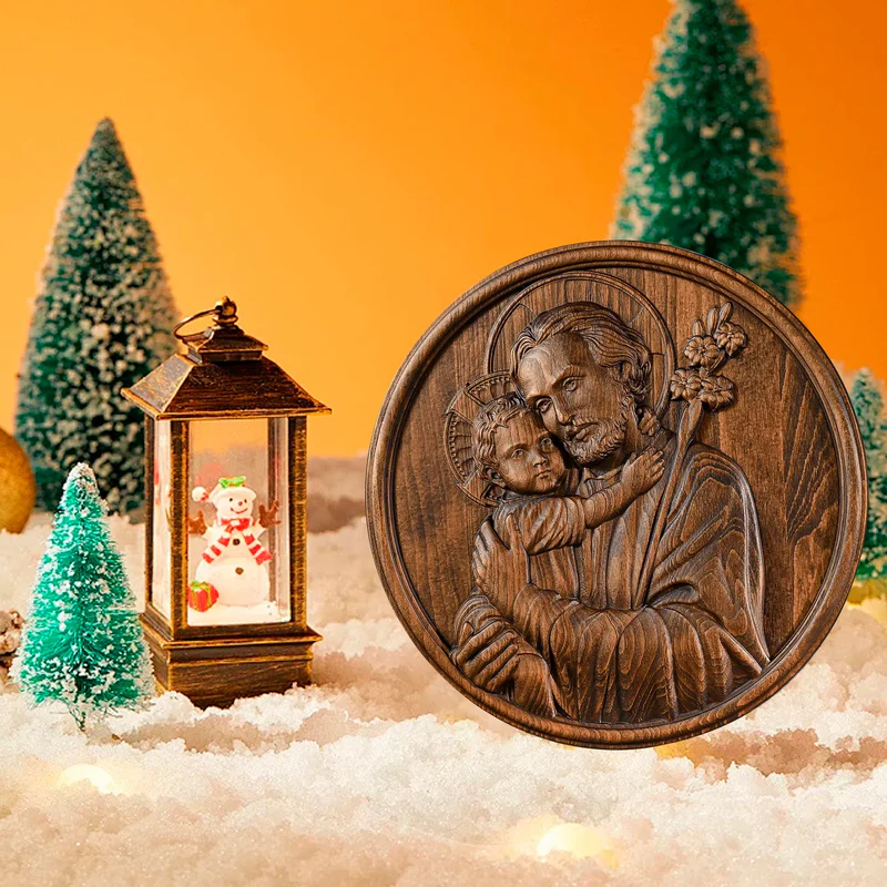 Joseph and Baby Jesus wood carving plaque – Father‘s day gift
