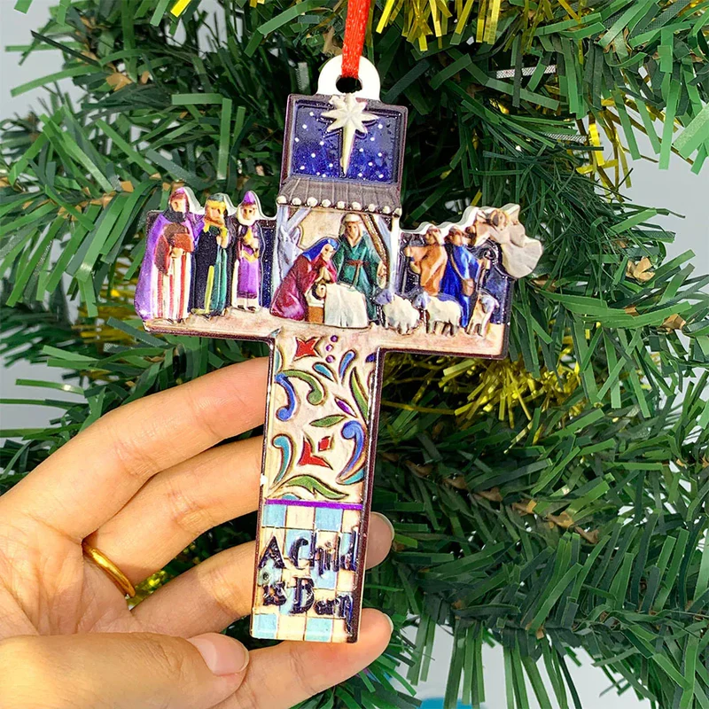 Nativity Cross Resin Hand Painted Color Decoration