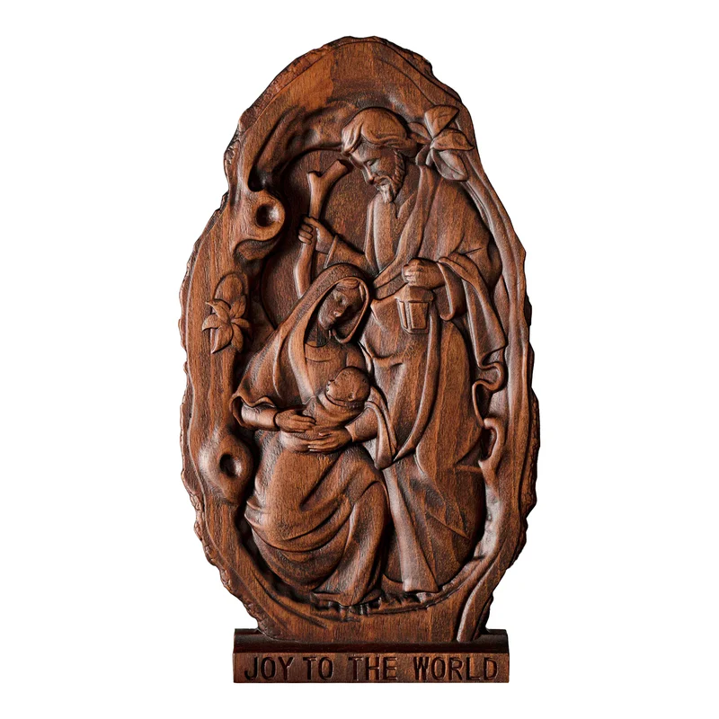 Natural Beechwood Nativity Scene Wooden Carved Plaque Tabletop Arrangement