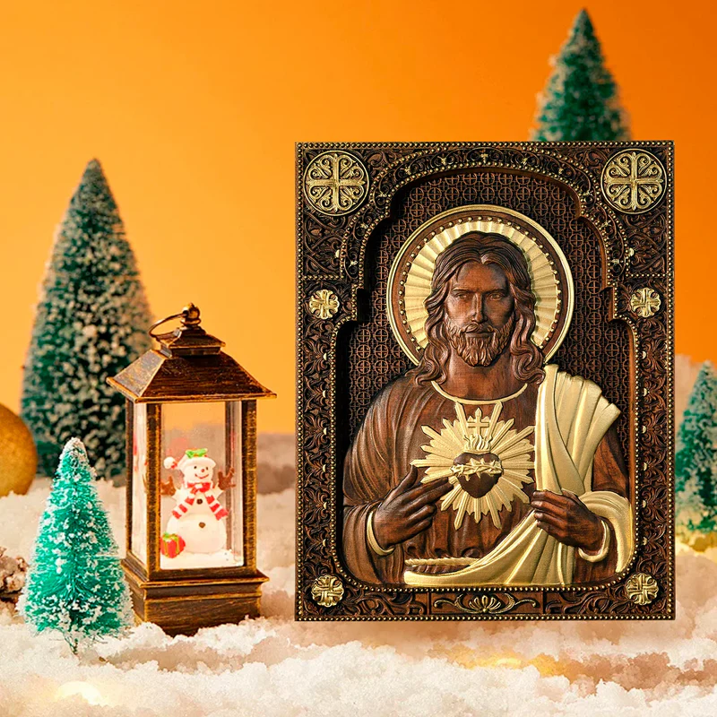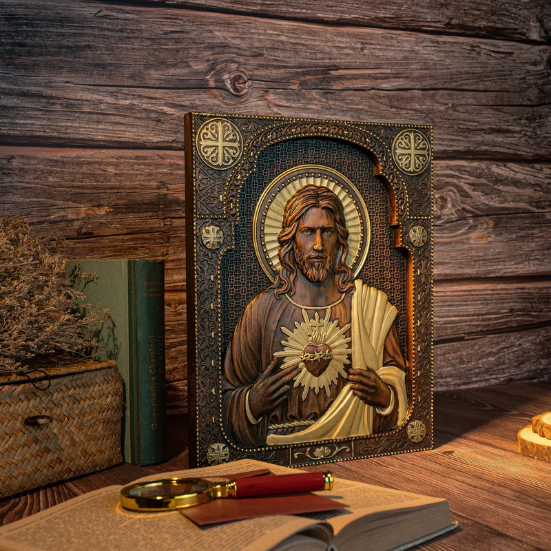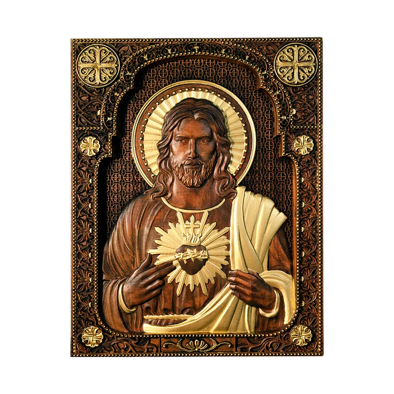 The Madonna Statue is an exquisite wooden religious home decor piece featuring the Immaculate Heart of Mary. This stunning piece of mural art is meticulously handcrafted from high quality natural oak solid wood. The finest details and dimensions of the icon are accomplished through computerized processing techniques and hand-tuning, while the final details are finished by hand applying wood oil.