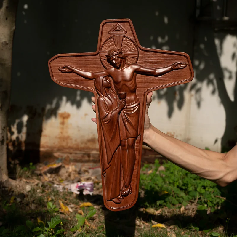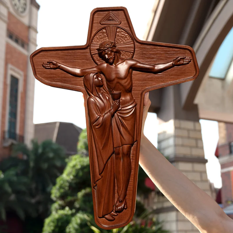 The Unity Cross has become one of the most characteristic symbols of the Schoenstatt Movement. Three symbols can be seen on it: the image of Christ, the image of Mary and the Father Symbol. The Unity Cross expresses the bi-unity that Schoenstatt wants to proclaim: Christ is inseparable from Mary and Mary is inseparable from Christ. The Father Symbol at the cusp of the cross illuminates everything: Christ and Mary rest in the Father, in the cross that the Father has determined in his plan of love, as the way of redemption. Moreover, Christ and Mary have a unique posture: they are alive and they are mutually looking at one another in a profound dialogue of Mother and Son. The blood that Mary gathers with his chalice emanates from Christ’s side. The fact that they are alive is not only symbolic; rather, it further makes a truth of faith evident: On the cross, Christ and Mary, as well as in reality, are presently alive in a glorious body.