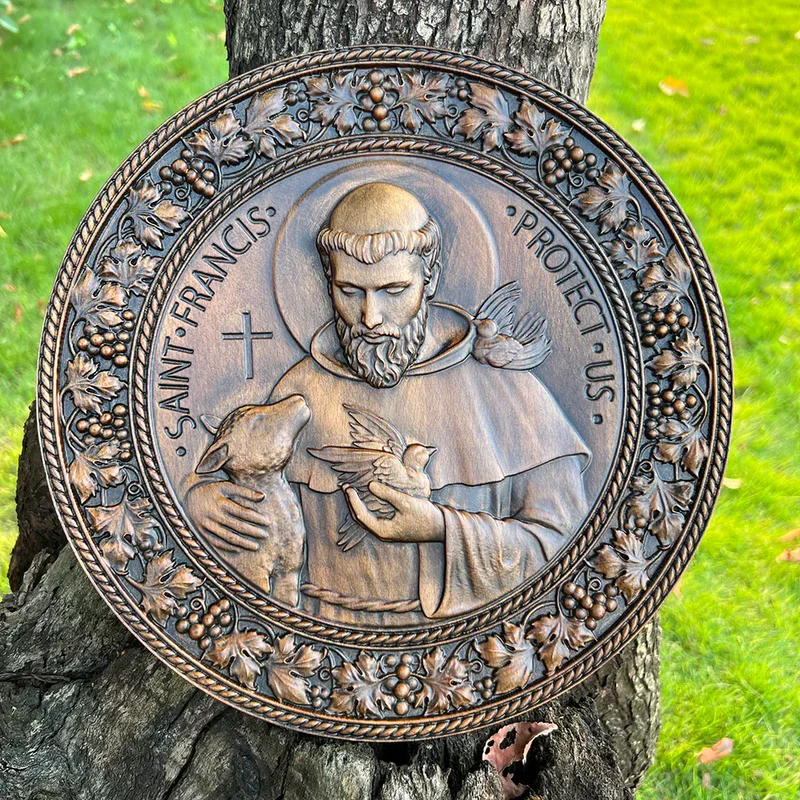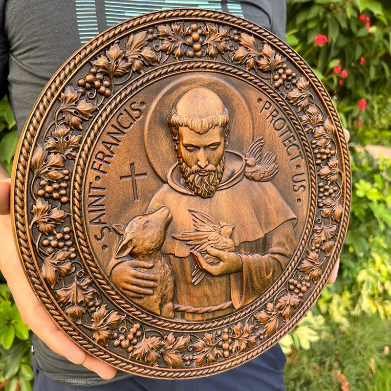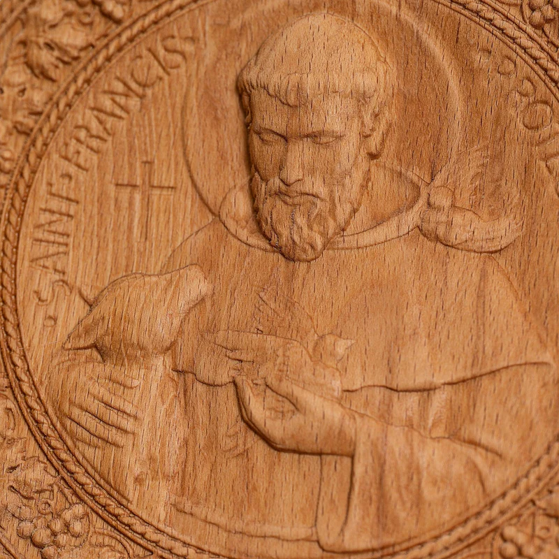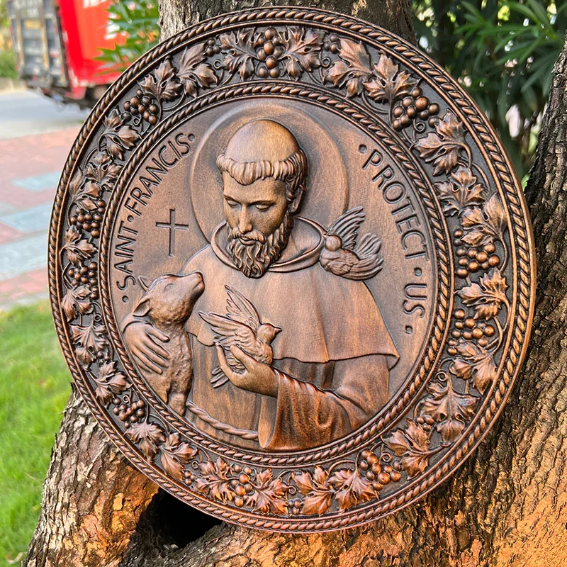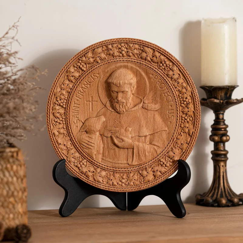 St. Francis of Assisi Patron Saint of Animals Religious Icon – Natural Wood Wall Decoration Hanging Souvenir