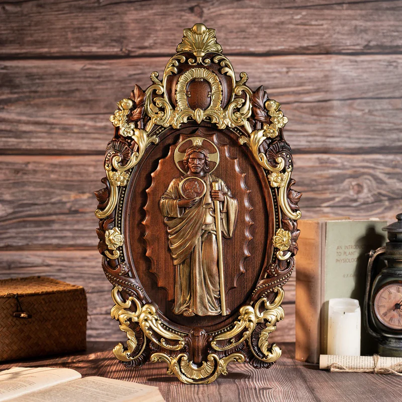 St. Jude Wooden Religious Icon Wall Artwork – Patron Saint of Despair in Troubled Times